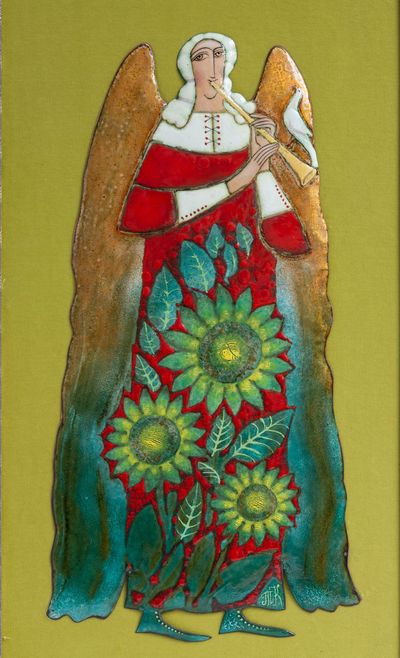 Guardian Angel, hot enamel on copper,