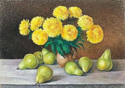 Olha Omelchyshyna lives and works in Kamianets-Podilskyi, Ukraine now. She has participated in exhibitions in Kamianets-Podilskyi and Kyiv, as well as in art competitions in the UK and Poland. We showed her art in the exhibitions in the Gallery@First Bedford, MA (2023), the Loading Dock Gallery, Lowell, MA (2024), at Abington Art Center, Jenkintown, PA (2024). It seems to me that she is currently in a period of powerful formation of her own style, despite the fact that there is a full-scale war in the country. Olha Omelchyshyna works in oil pastels.