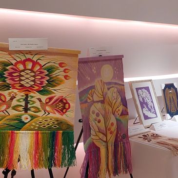 We presented beautiful samples of Petrykivka Painting by Oksana Dovban (wooden plates and gouaches), some spring inspired wool tapestry by Olha Piluihina, fruity oil pastels by Olha Omelchyshyna, and jewelry made in ancient technology of hot enamel on copper by Tetyana and Serhiy Kolechko.